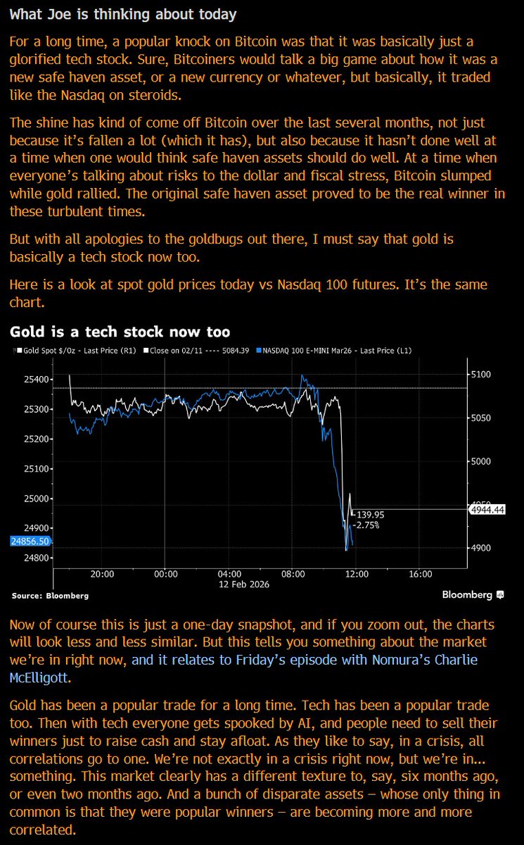 在今天的新闻简报中,我写了关于长期以来比特币被诟病像科技股一样交易的情况。现在你可以对黄金说同样的话了。