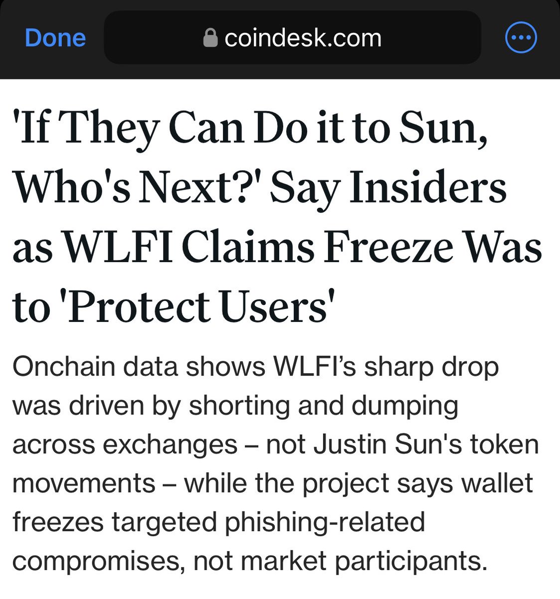 责任应该在于WLFI基金会,他们取消了一个用户的银行服务并违背了他们的宗旨。