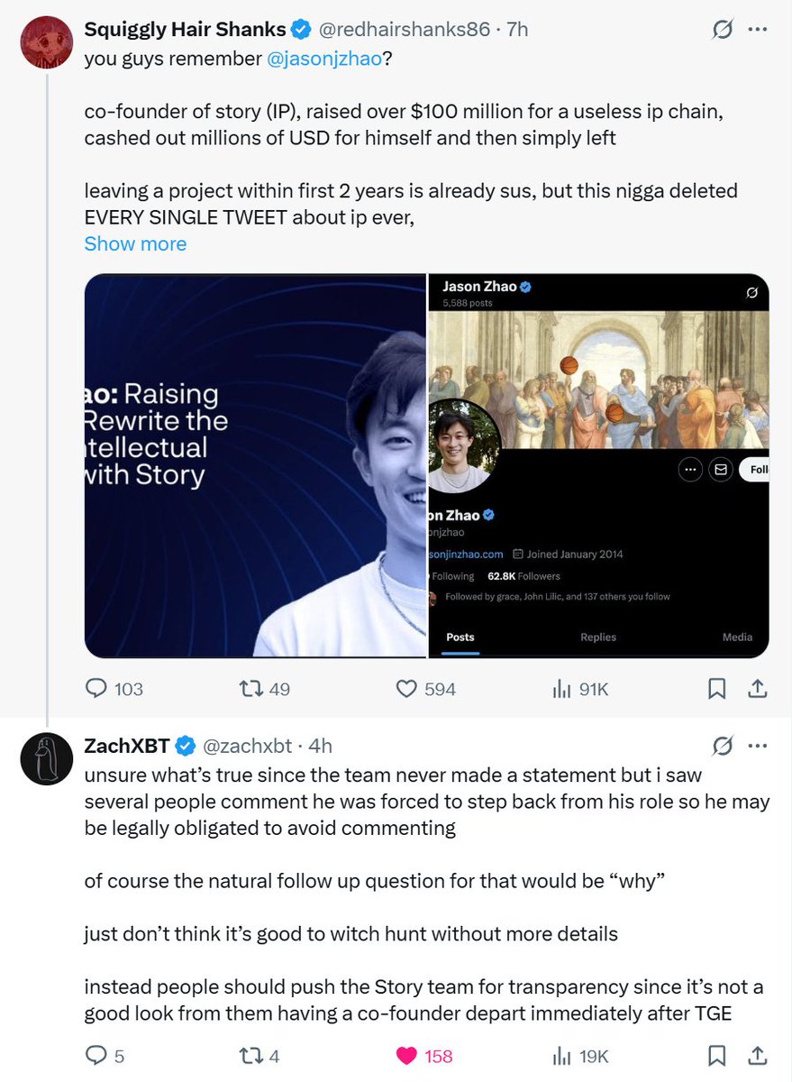 不确定什么是真的,因为团队从未发表声明,但我看到几个人评论说他被迫退出他的角色,所以他可能在法律上有义务避免评论。当然,接下来的自然问题会是“为什么”。只是认为在没有更多细节的情况下进行猎巫并不好。相反,人们应该推动Story团队提高透明度,因为创始人在TGE后立即离开对他们来说不是一个好现象。