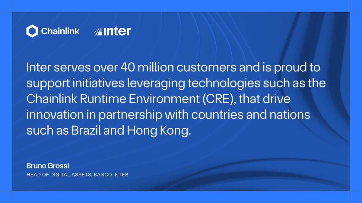在全球范围内推动创新:Inter。通过利用Chainlink Runtime Environment (CRE),@interbr正在为其超过4000万客户带来链上金融。