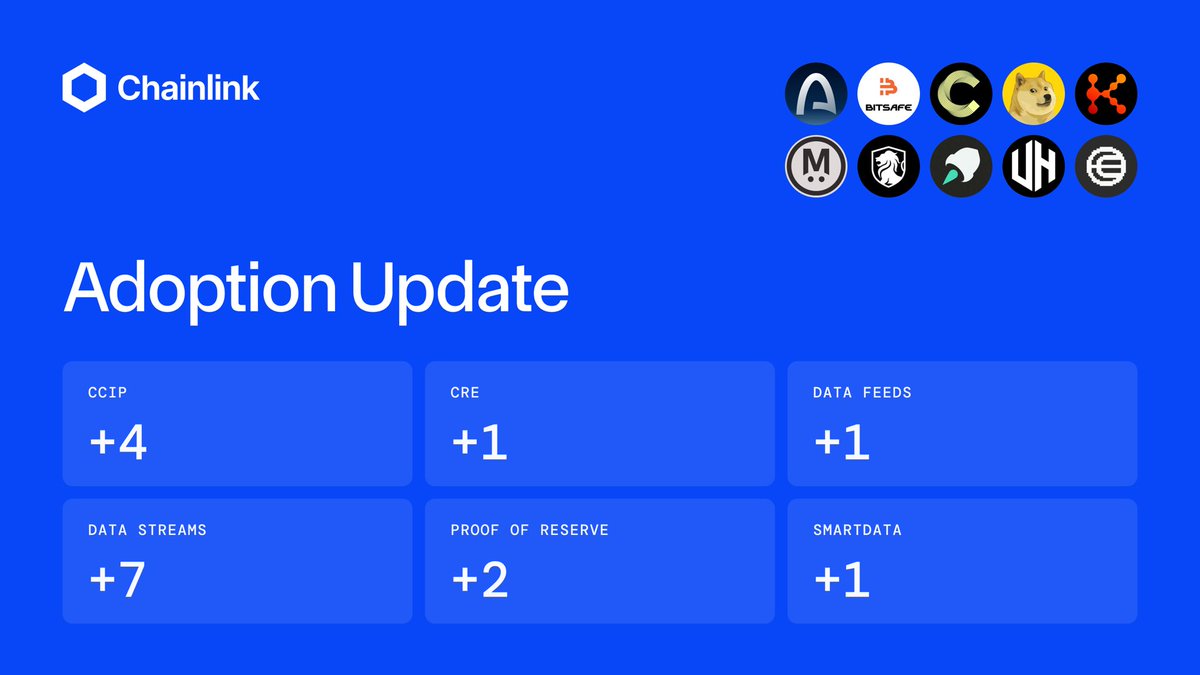 本周,Chainlink标准在5项服务和7条不同链上完成了8次集成:ApeChain、Avalanche、Base、BNB Chain、Ethereum、Katana和Solana。