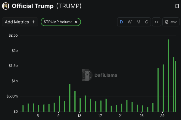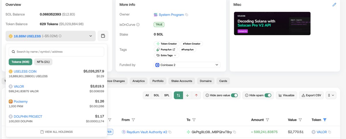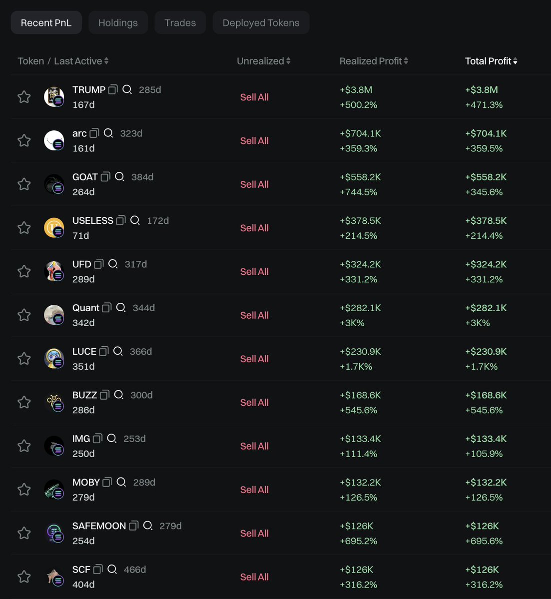 • 在 Solana 上,他花了5,346 $SOL(107万美元)以6.45美元的价格买了165,401 $TRUMP(140万美元),未实现利润为33.5万美元。