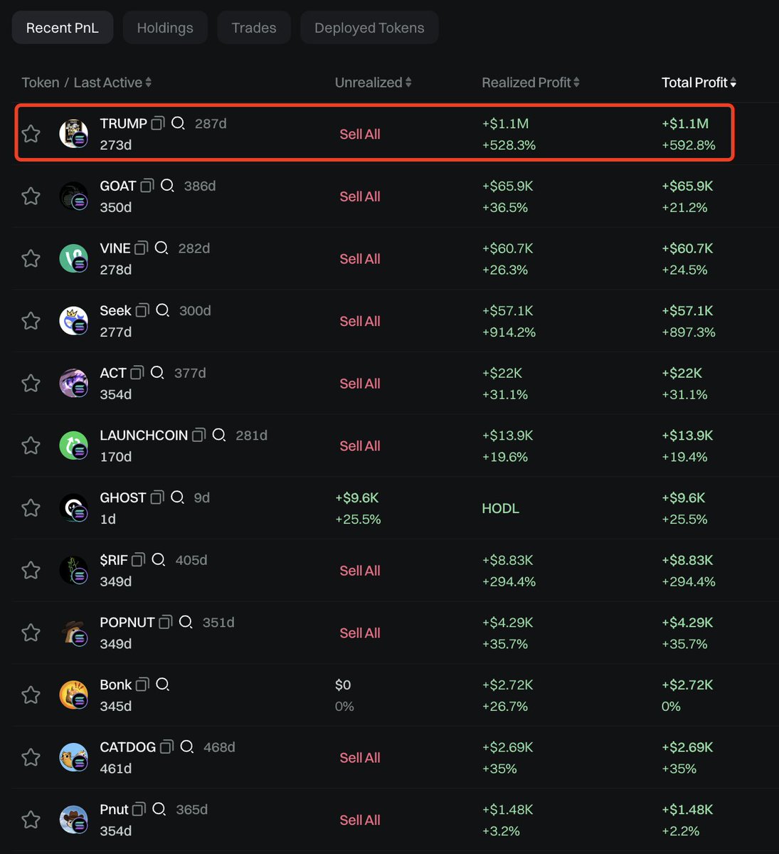 有人创建了新钱包来购买 $TRUMP 现货在 #Solana 上,同时还在 #Hyperliquid 上做多 $TRUMP —— 已经坐拥超过150万美元的利润!