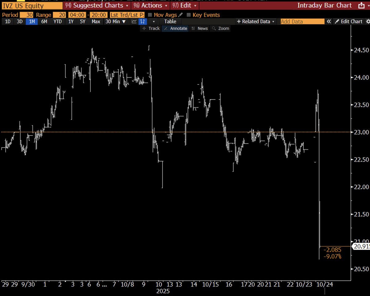 Invesco股价瞬间下跌9%。关于$QQQ的投票现在正在进行。我猜它没有通过?不确定。还没有官方发布。ht @Todd_Sohn