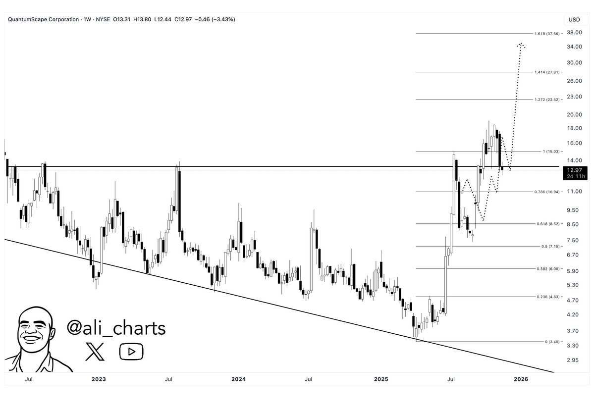 QuantumScape $QS 正在完成看似看涨的重新测试,然后朝着 $38 的方向迈进。