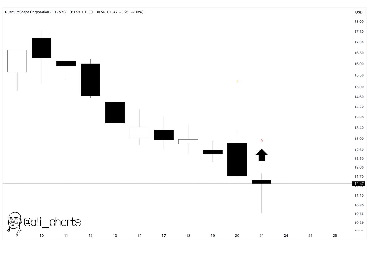 QuantumScape $QS 下周可能迎来一轮反弹,因为TD Sequential指标闪现买入信号。