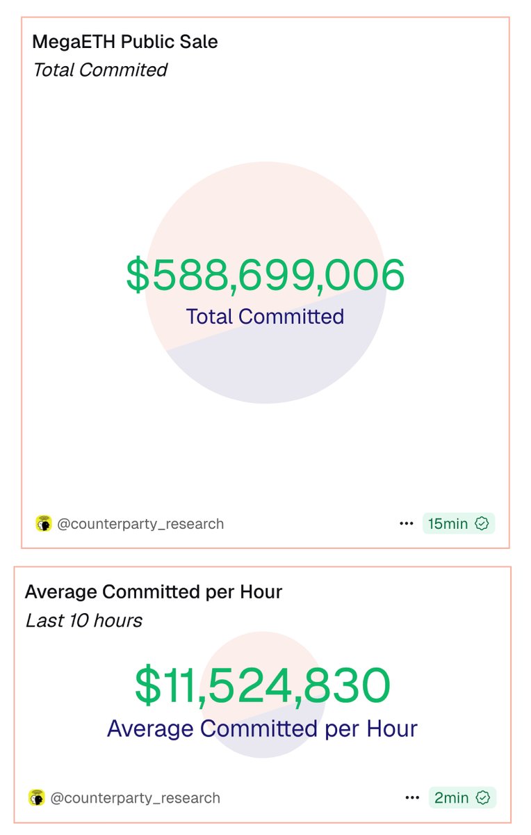 MegaETH (@megaeth_labs) $MEGA 销售即将达到 $1B 的承诺金额。