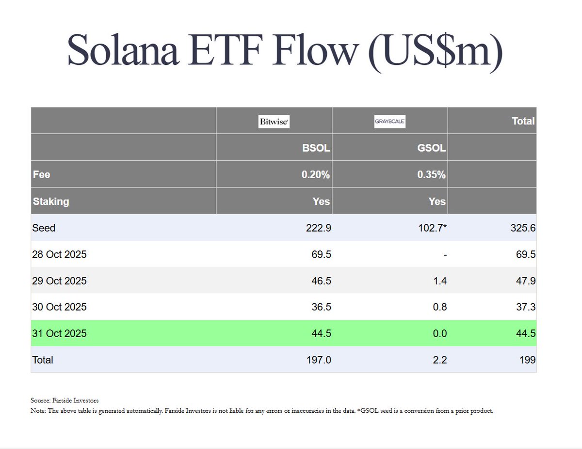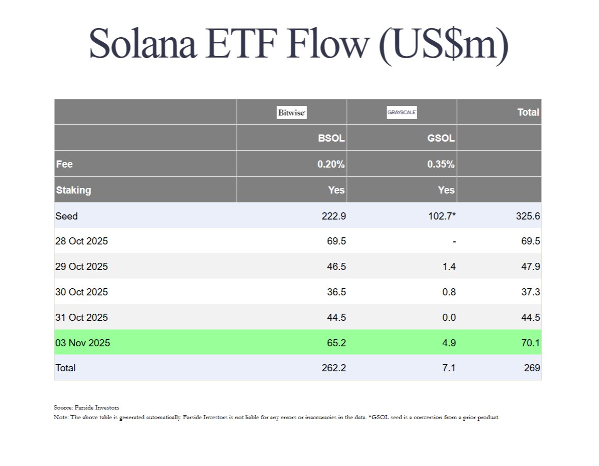 🔹 Bitwise的$BSOL ETF首日净流入$69.5M。