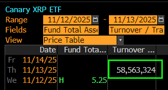 🔹 Canary Capital的$XRPC首日交易量达到5860万美元,成为2025年任何ETF上市首日最大规模,略高于$BSOL的5700万美元,据彭博社的James Seyffart报道。