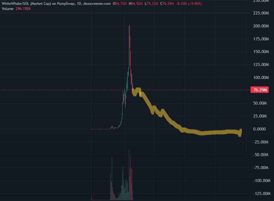 - White Whale在Hyper Liquid上破产,损失了80,000,000美元,接下来你知道的,一周后他就在运行自己的迷因币,表现得像是某种拯救者。