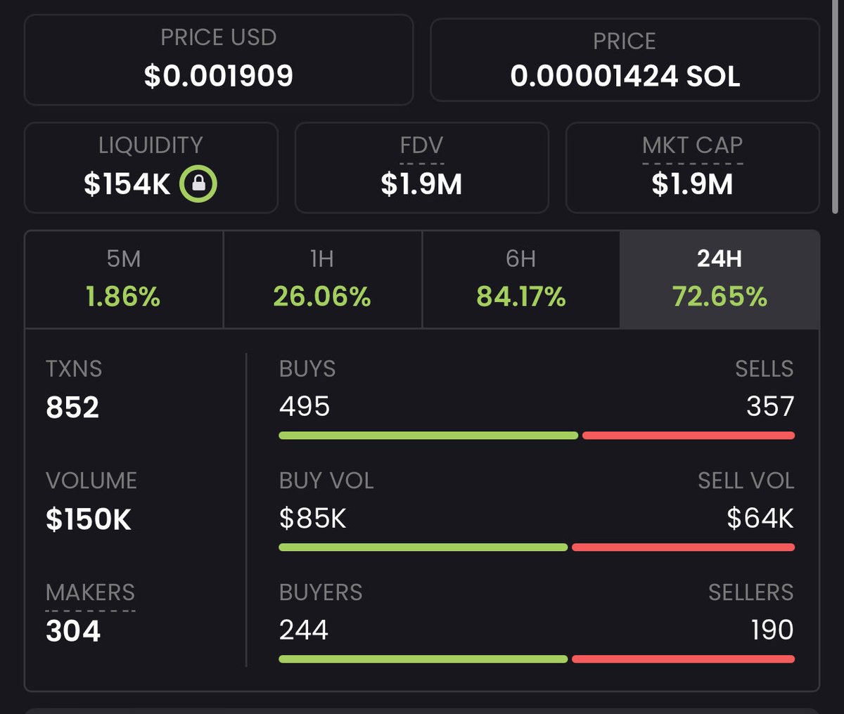 目前市值100万美元。在我看来,似乎我们已经触底并守住了这个底线。考虑到首日惊人的95,000%涨幅,从低至7.6k美元市值飙升至740万美元市值,这很健康。