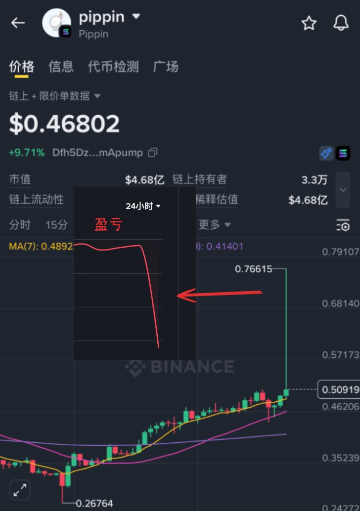 01.02 pippin 曾短时跌至 $0.35 ,今天又反弹到 $0.4883 了,从 2024.11.22 开始已持续了 45 天的操盘,且自 11.30 起大部分时间都是负费率,太磨人了