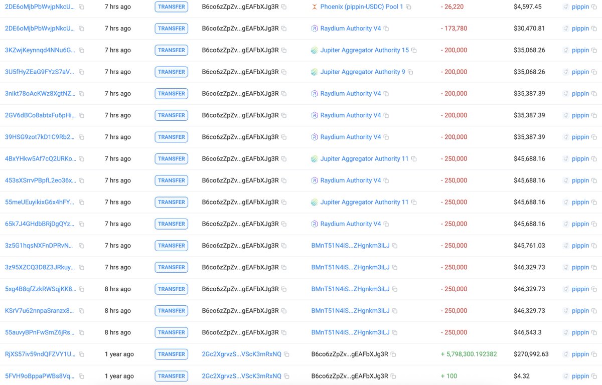 一个月前,有人创建了一个新钱包,BxNU5a,并花费了$179.8K购买了8.2M $pippin(现在价值$1.51M)。这家伙现在坐拥超过$1.35M的未实现利润。
