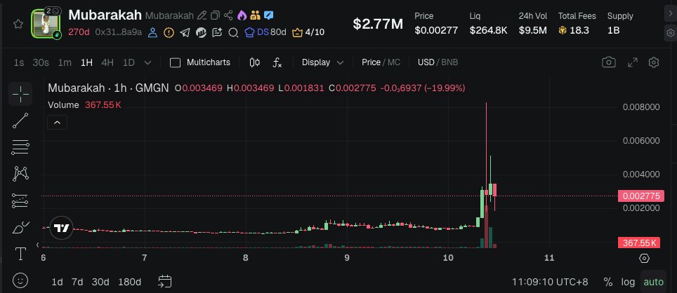 有人入侵了@heyibinance的微信账号,并发布了关于$Mubarakah的信息,导致该代币价格飙升。@cz_binance