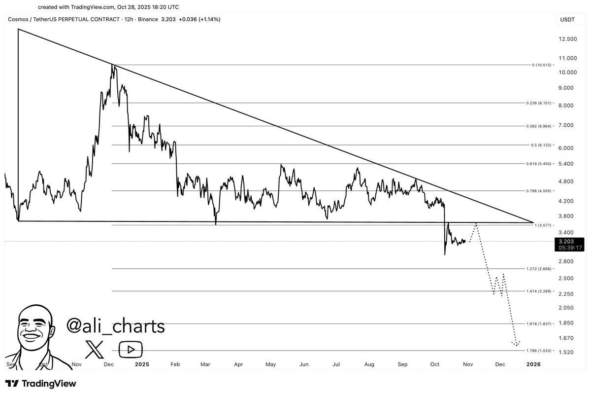 Cosmos $ATOM 已经跌破下降三角形,为向 $1.60 的下一个关键支撑位移动打开了大门。