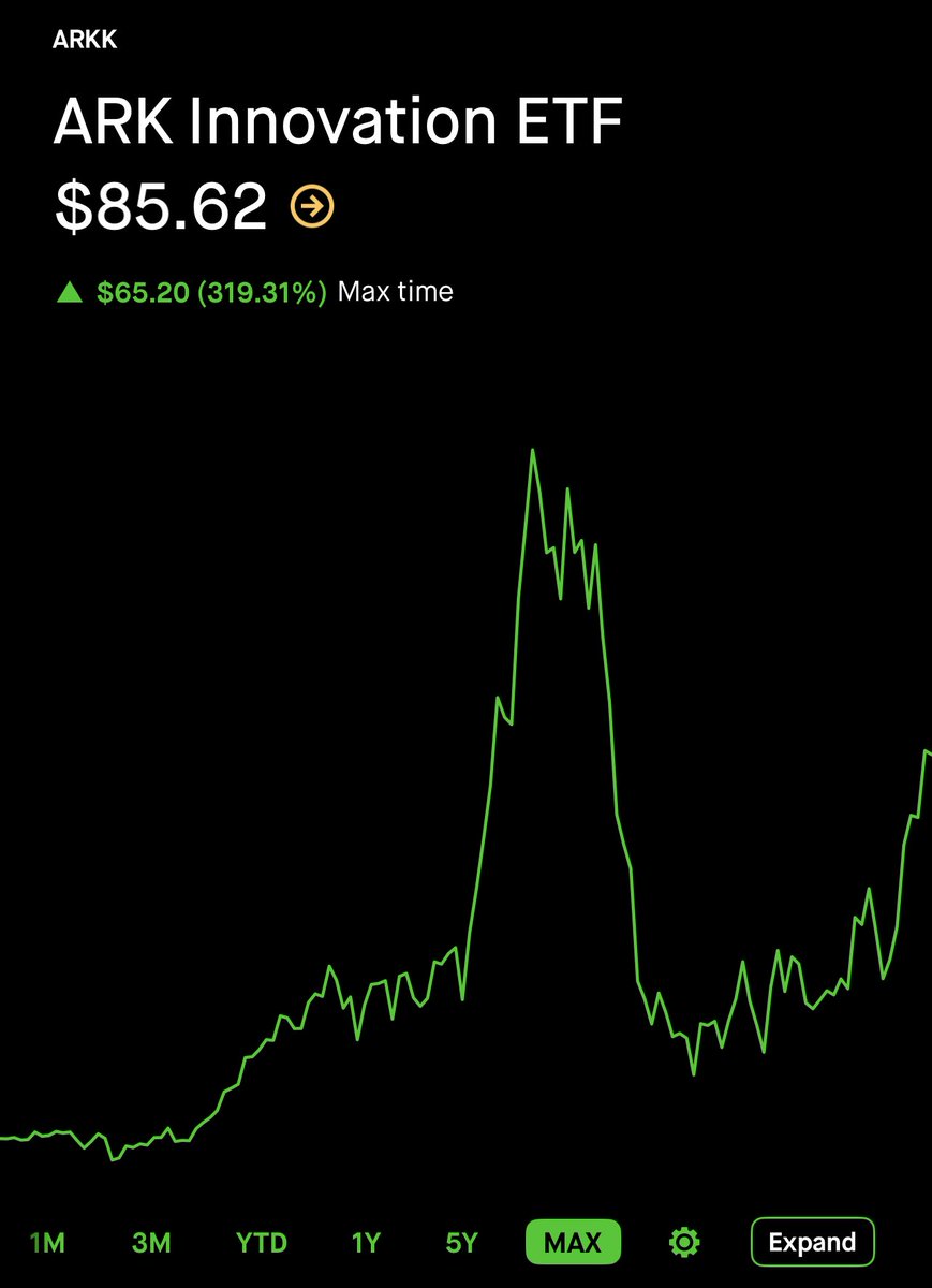 Cathie Wood和Ark Invest的$ARKK ETF自成立以来上涨了319.31%