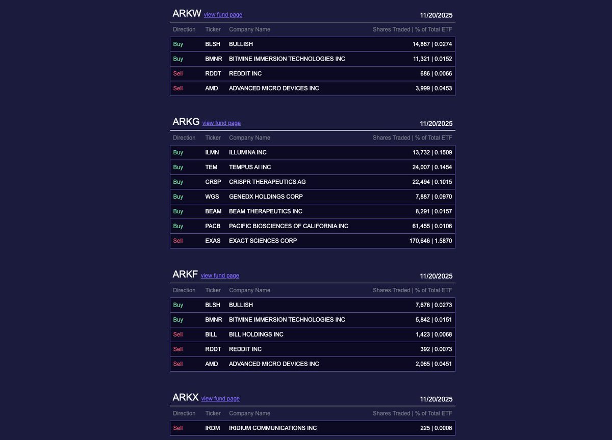 🟢 +24.05% $ARKF ARK Fintech Innovation ETF
