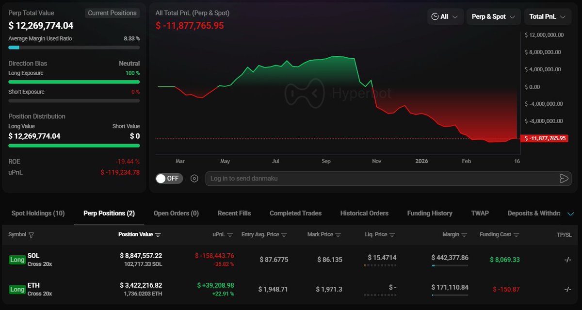 超1,187万美元爆仓!巨鲸ETH·SOL 20倍杠杆多单遭清算