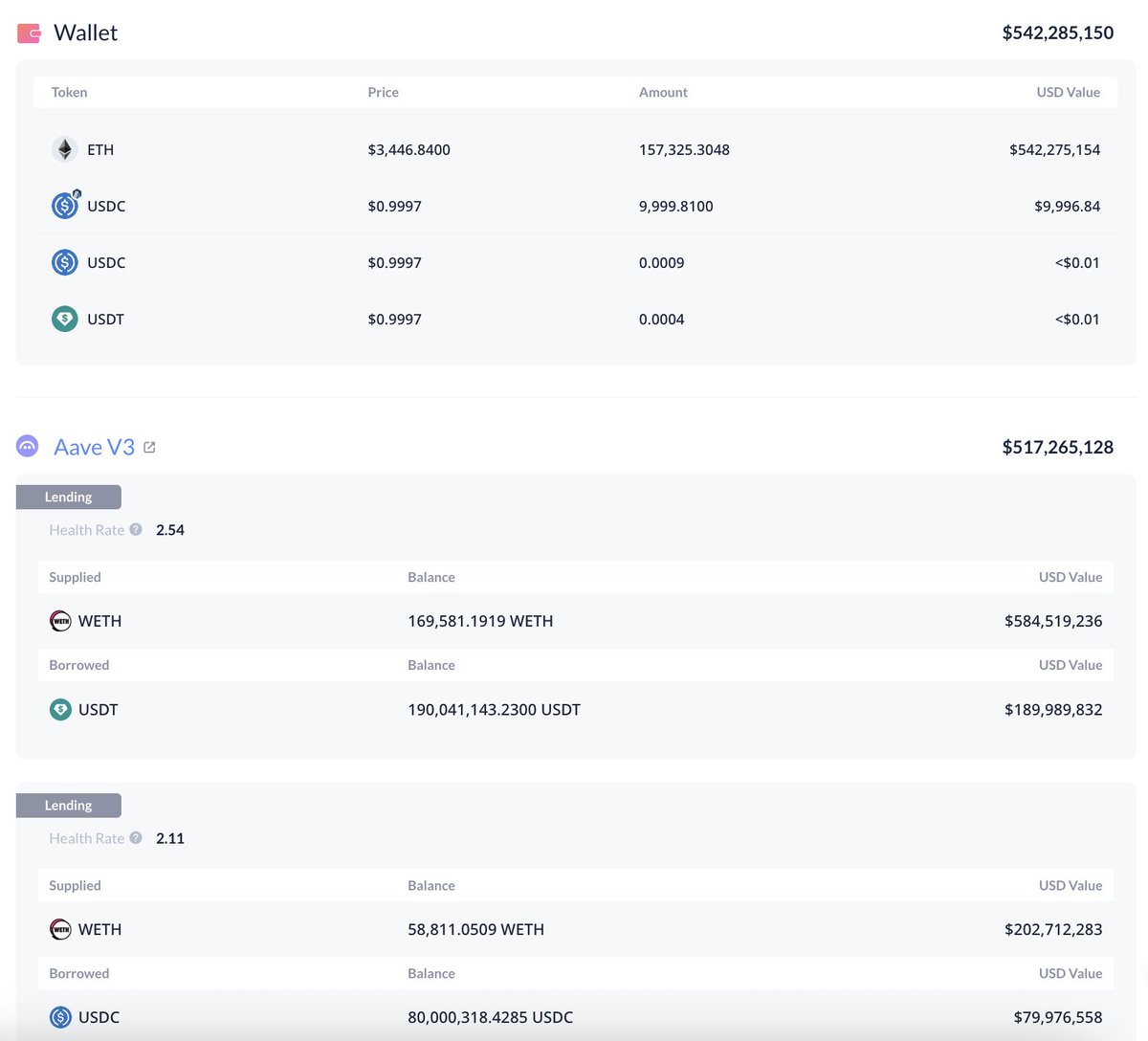 自11月4日起,他已累计买入385,718 $ETH($1.33B),其中用于购买$ETH的2.7亿美元资金是从Aave借来的。