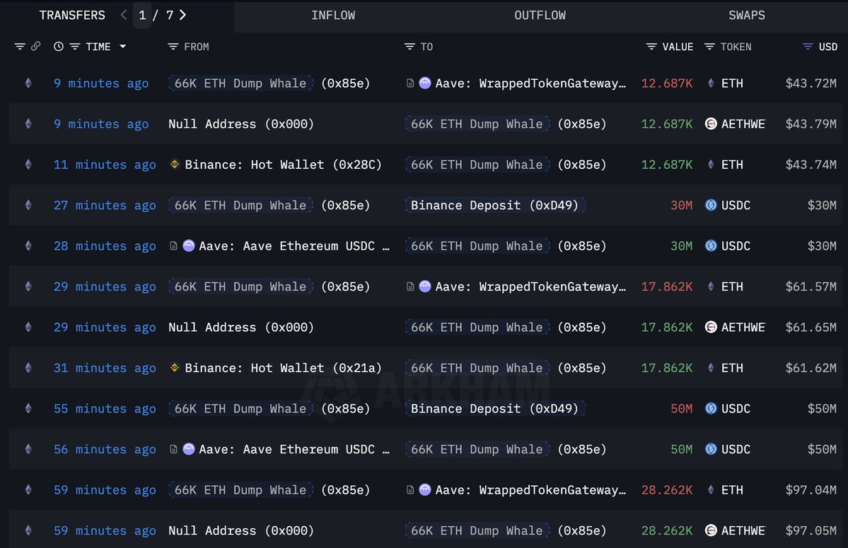 这位#66kETHBorrow巨鲸在过去一小时又买入了30,548 $ETH($105.36M)。