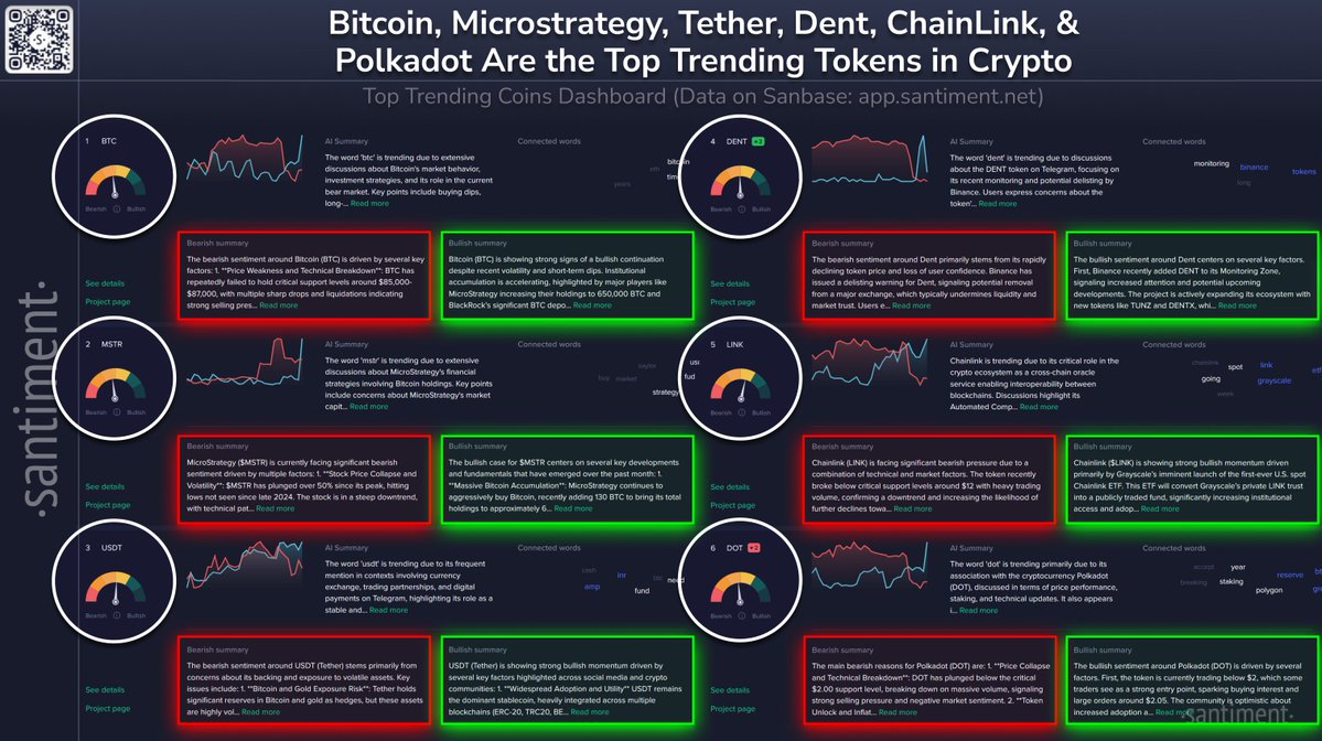 🔗 @santimentfeed 热门币种仪表板可在此处查看: