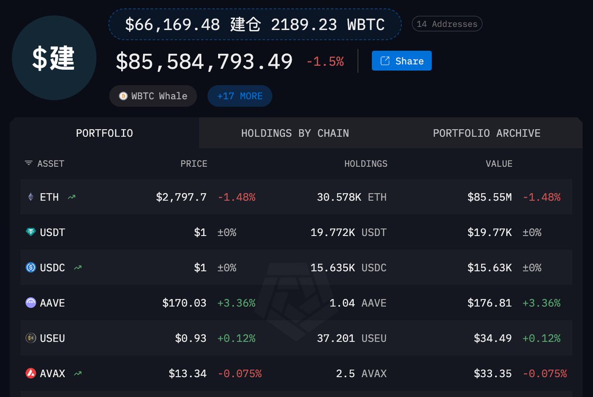 两个地址在 2024.02-2025.02 期间以均价 $66,169.48 买入了 2,189.23 枚 BTC,累计花费 1.44 亿美元;随后他将代币分发至多个地址,其中地址 0x9b8...822d8 20 分钟前向 #Binance 充值 250 枚 BTC,若卖出将获利 628.3 万美元