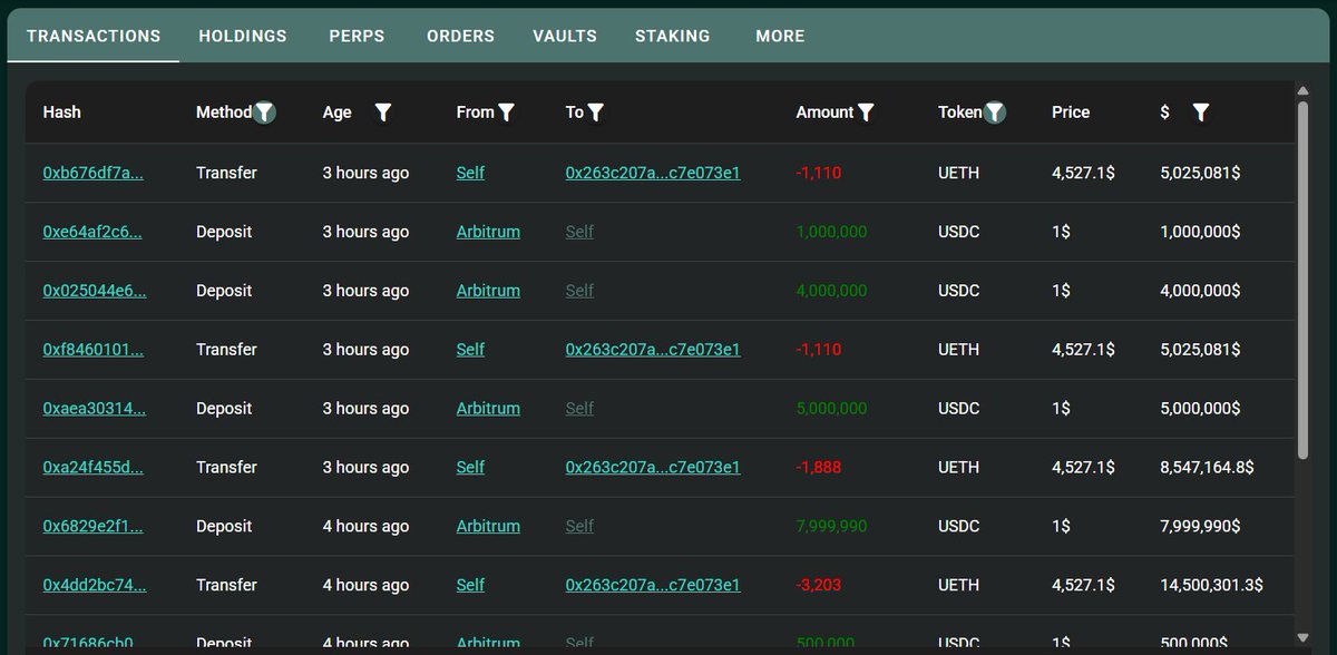 9 小时前他从 Aave 中借出 1100 万枚 USDT,随后在链上以均价 $4,396.5 买入 2502 ETH;目前共抵押 10,345 ETH 并借出 2008 万美元的稳定币,健康度 1.84