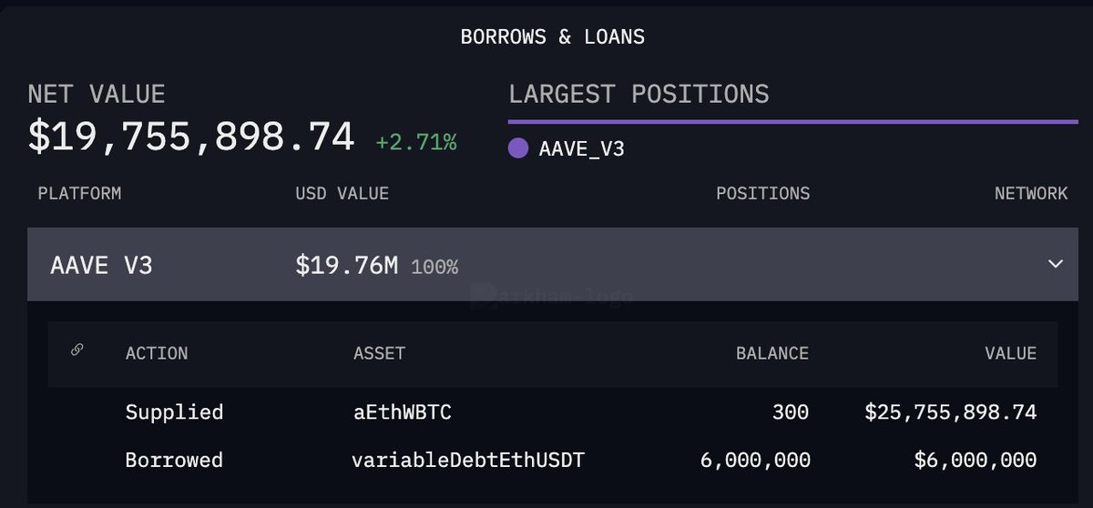 因为有通过循环借贷加杠杆,他在 Aave 上的借款也高达 $1.14 亿。