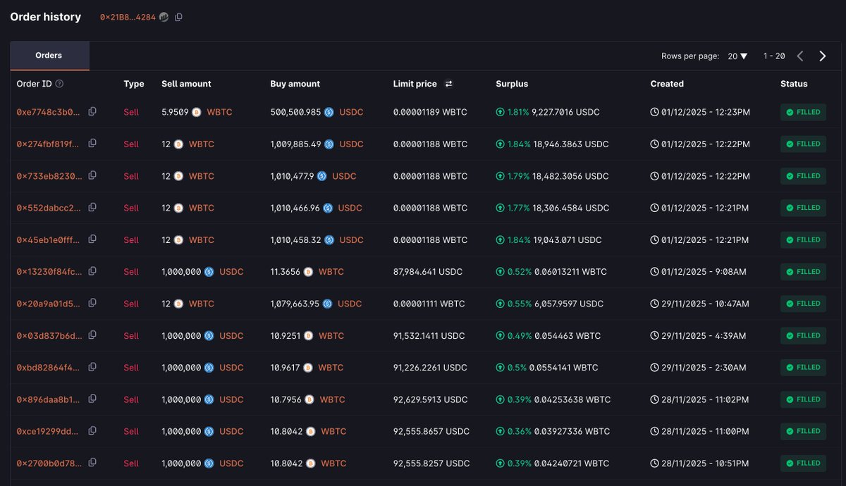 11 小时前他在链上花费 792 万美元买入 90.85 WBTC,均价 $87242,而在此之前一天他才刚刚卖掉了多达 793.24 WBTC(成本 $74746.46),获利 994 万美元