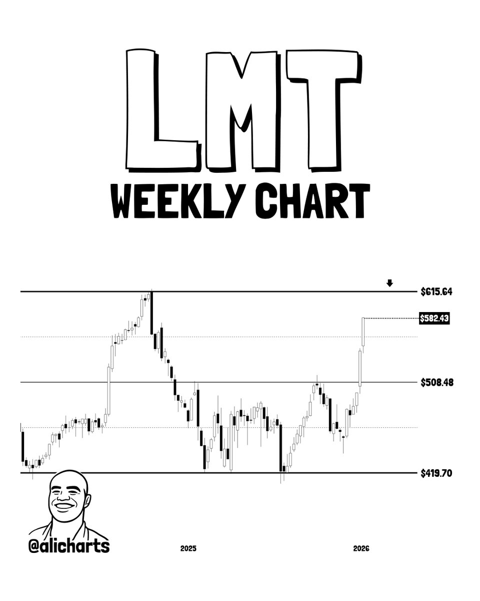 洛克希德·马丁 $LMT 继续向通道顶部 $615.64 攀升。