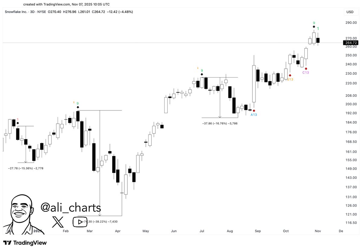 TD Sequential在预测Snowflake $SNOW的局部顶部时一直非常准确,它刚刚发出了卖出信号。