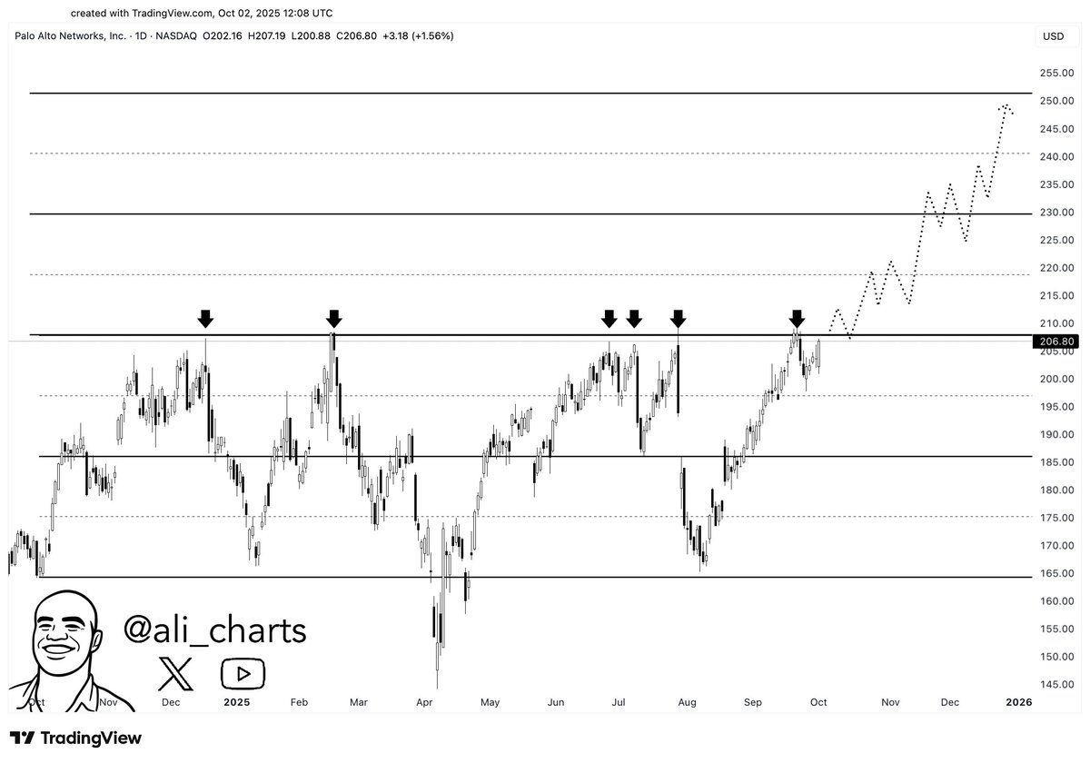 突破$210,Palo Alto Networks $PANW可能飙升至$250。