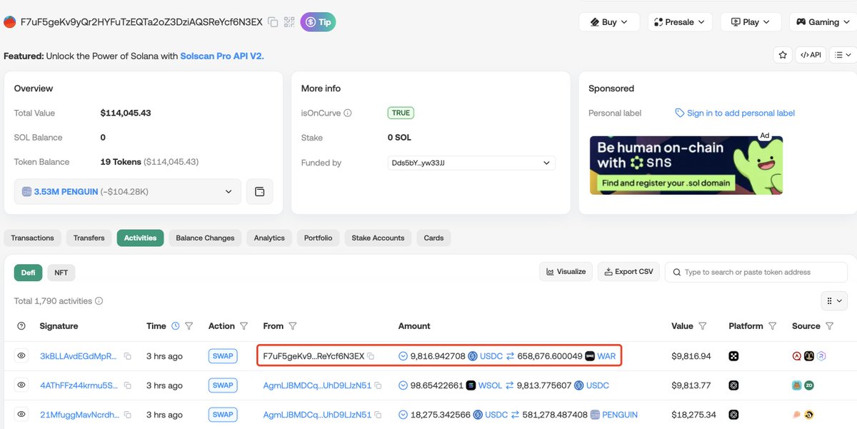 100,000 $SOL(1360万美元)