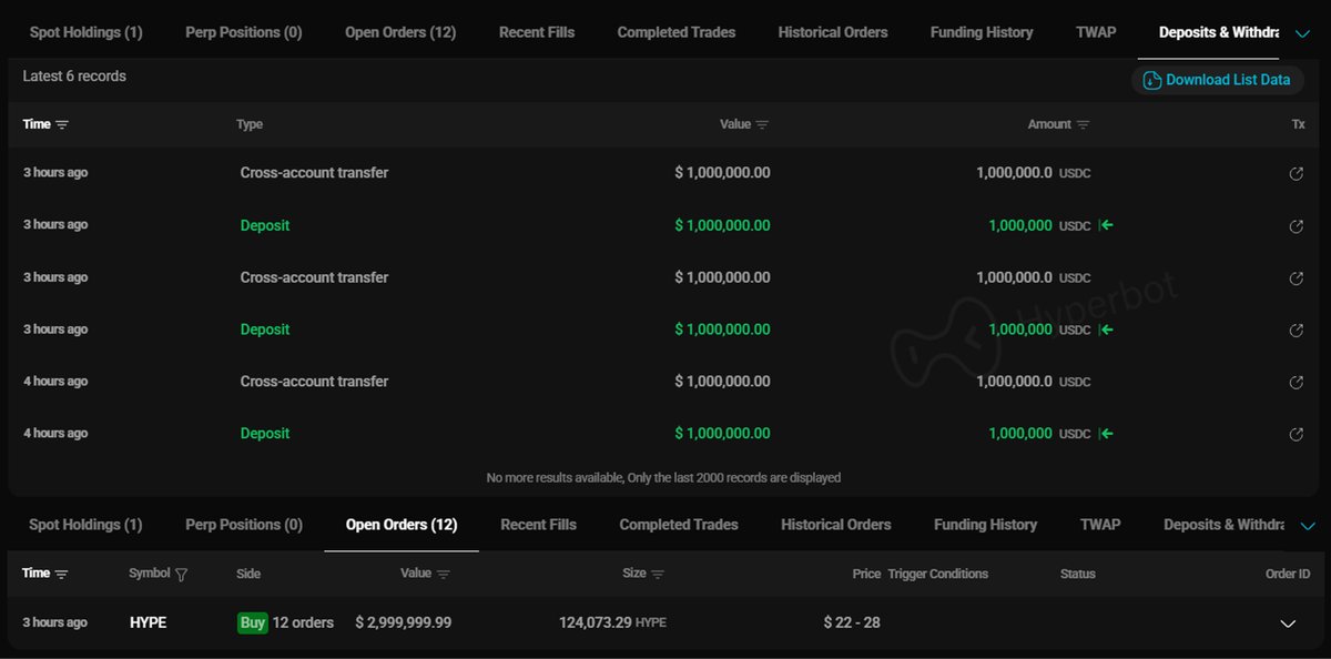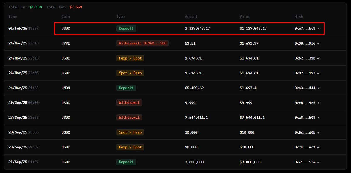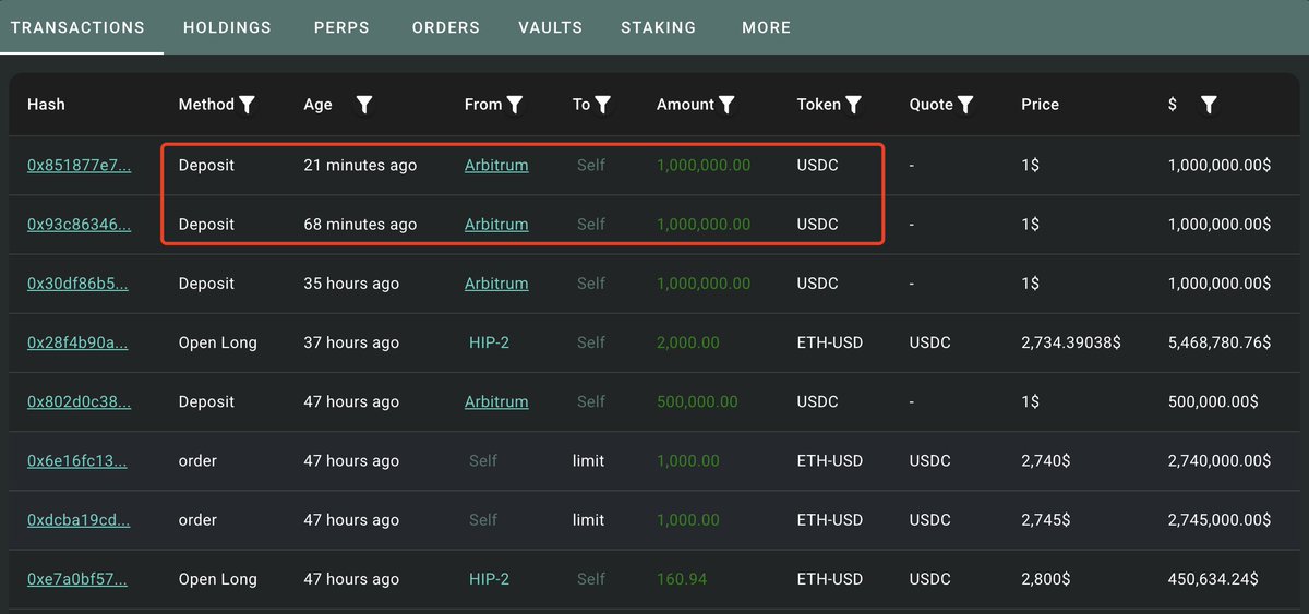据悉 0xSun 钱包向 HyperLiquid 存入 200 万 USDC