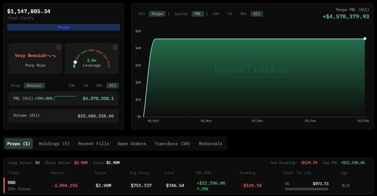 有人创建了新钱包来购买 $TRUMP 现货在 #Solana 上,同时还在 #Hyperliquid 上做多 $TRUMP —— 已经坐拥超过150万美元的利润!