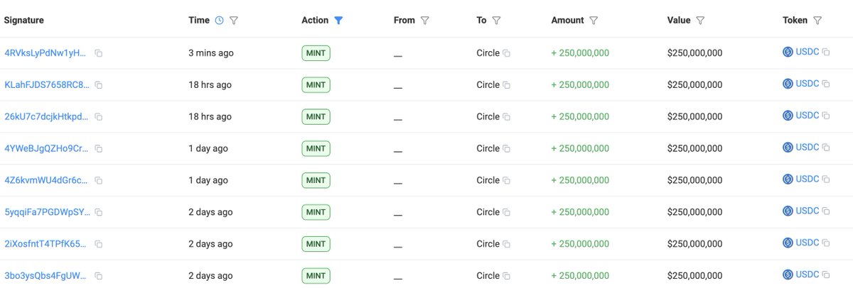 Circle(@circle) 在过去两天内铸造了20亿 $USDC!