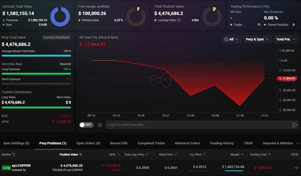 • 在 Hyperliquid 上,他存入了485,669 $USDC 并使用最大杠杆做多113万 $TRUMP(950万美元),未实现利润现在为118万美元。