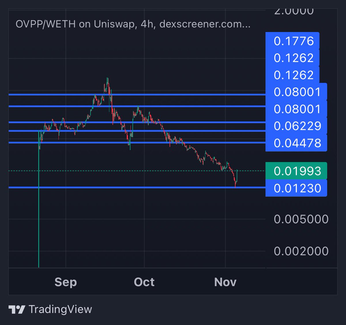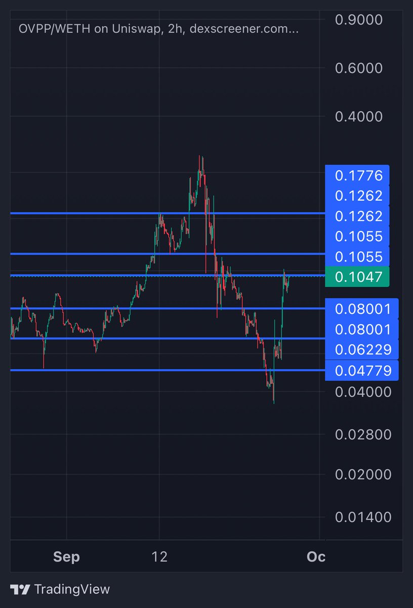 $OVPP 在从低点上涨3.5倍后,现在正在小幅回调并进入支撑区域。预计多头将介入,这将是下一个阶段上涨至$0.175和新ATH前的局部底部。