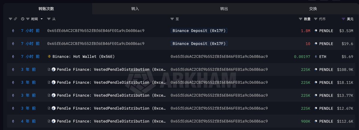 180万枚PENDLE转入币安…三年前锁仓代币现已解锁