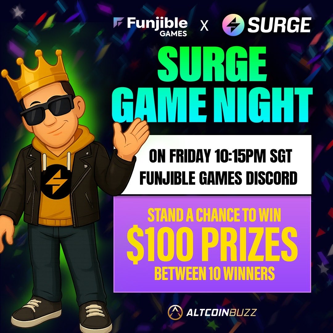 加入Funjible Games Discord,参加一个充满预测和奖品的精彩夜晚,以史诗级的Telegram游戏@WeSurgeNow 🔥