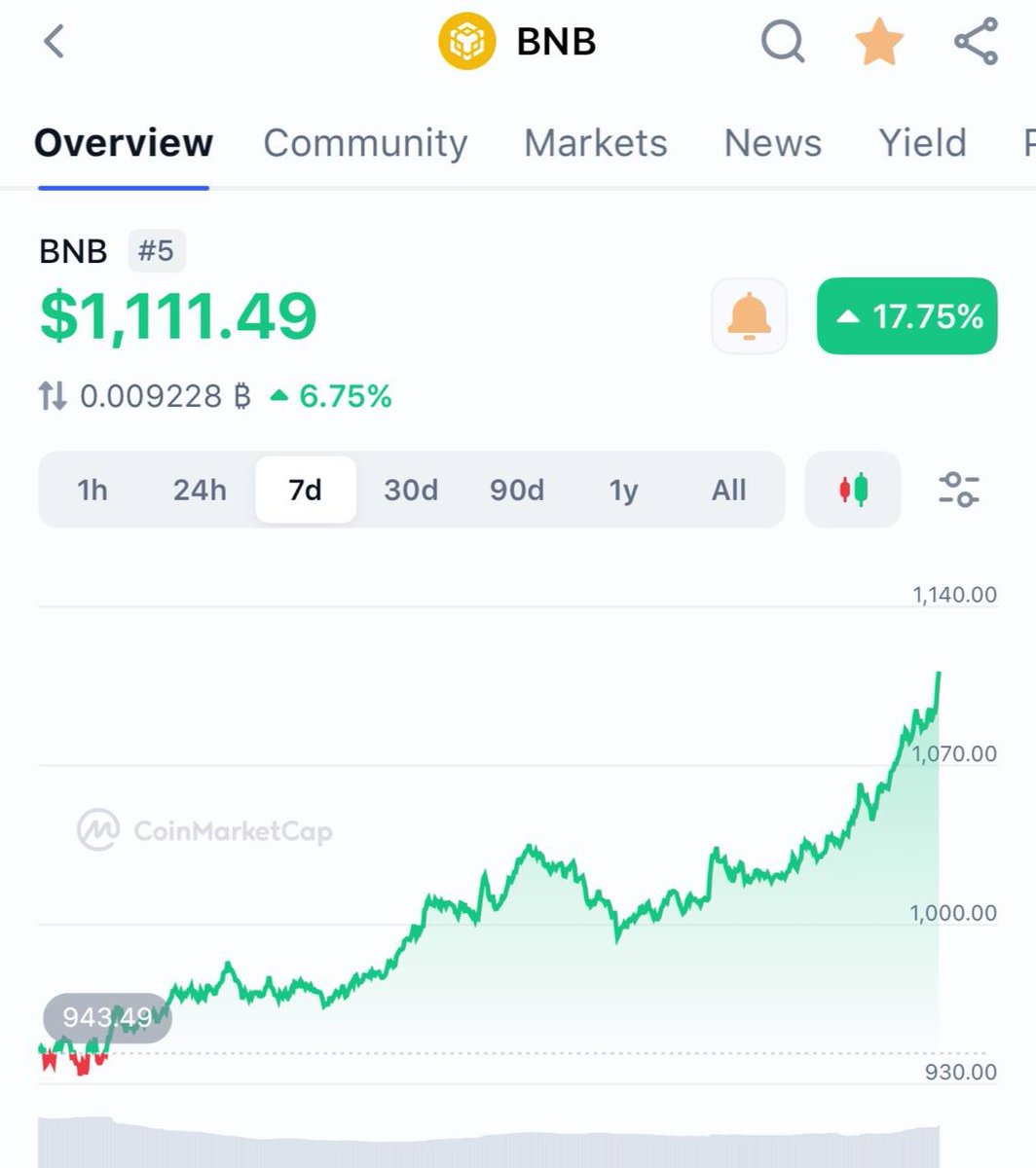 🪙 Binance Coin $BNB:因为Binance Coin (BNB) 达到历史新高,包括一个重要的价格里程碑1000美元。讨论强调了BNB的强劲市场表现、年度代币销毁以及其在加密货币生态系统中日益增长的采用和流动性。用户谈论Binance的市场影响力、BNB交易的恢复工具以及涉及BNB的交易策略。该代币经常在加密货币交易、钱包和区块链网络的背景下被提及,强调了其在交易、费用和平台使用中的作用。