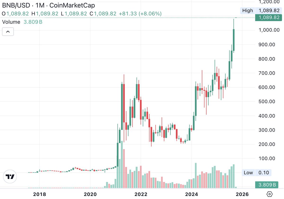 🔹 CZ感谢社区,因为$BNB达到$1,000,从八年前的$0.10 ICO价格上涨了10,000倍。
