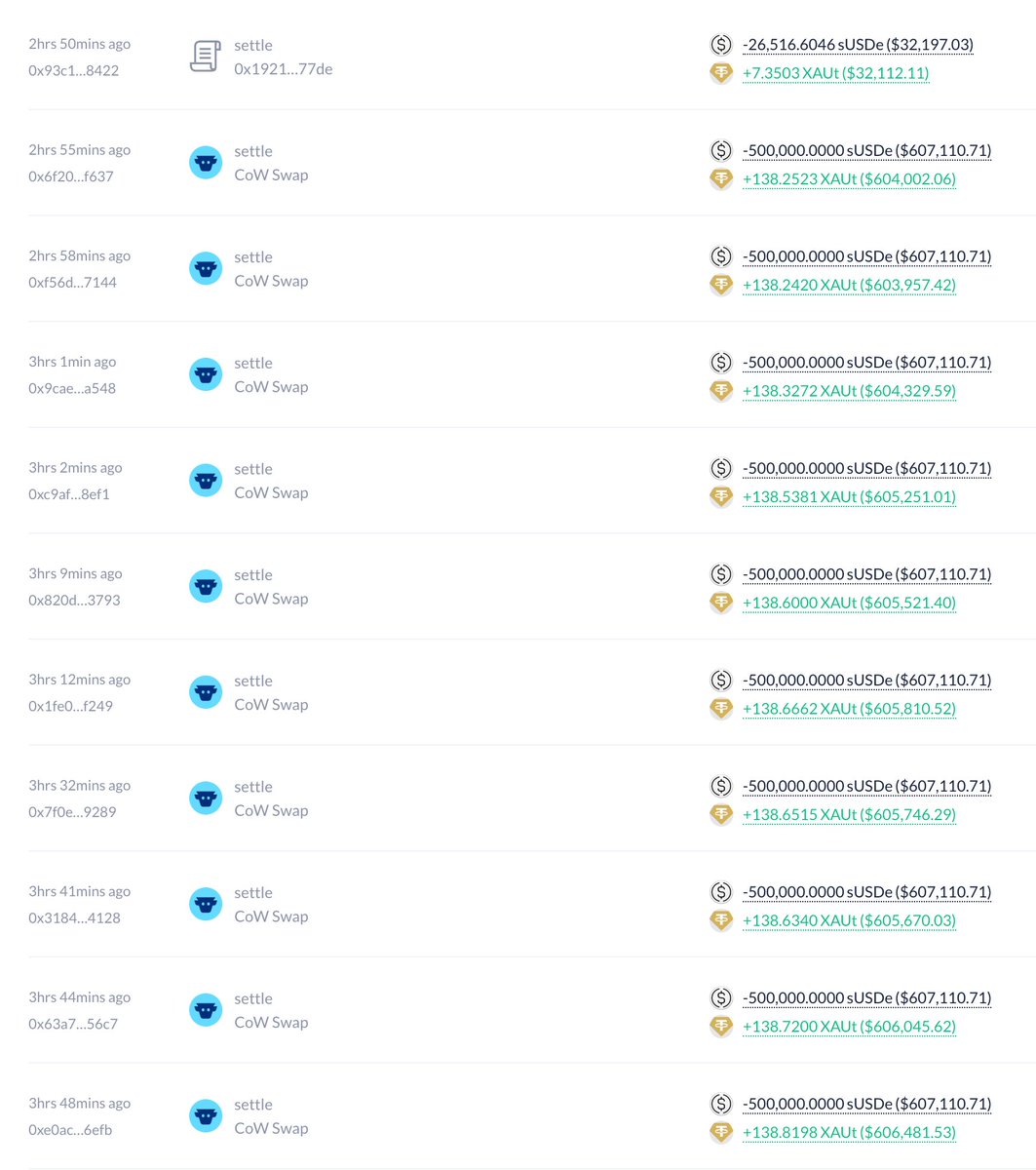 - 鲸鱼"0x7dc"在过去24小时以$5,321的价格购买了667 $XAUT,价值$3.55M。
