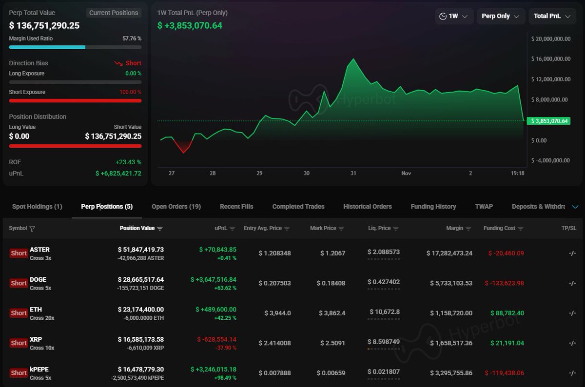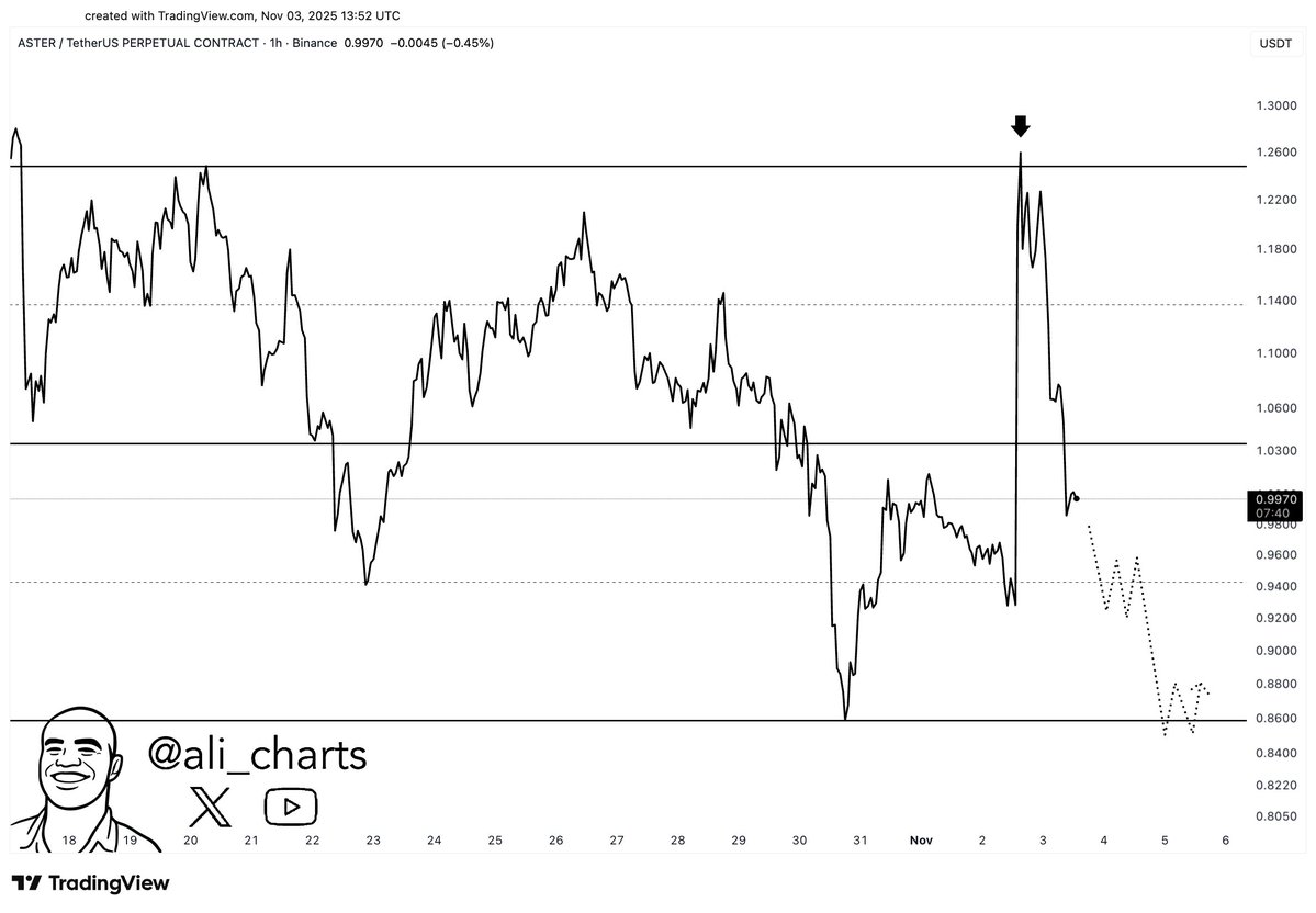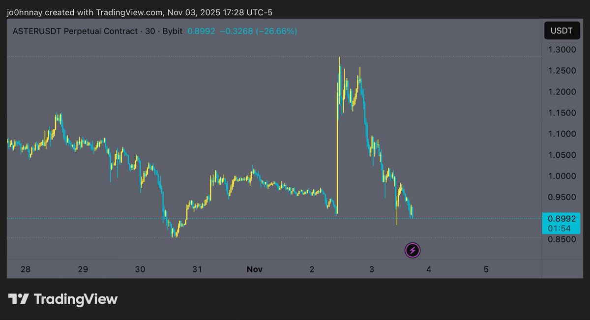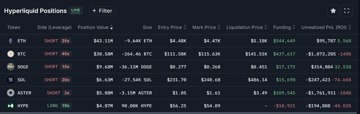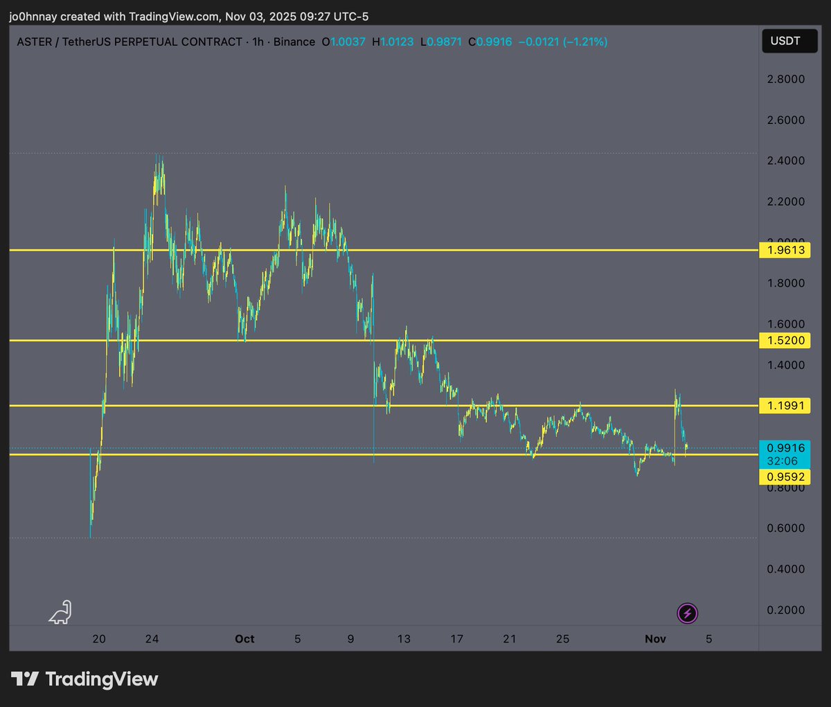 - 钱包 "0x9ee" 存入1330万美元开立$ASTER空头仓位,目前价值约5200万美元,并有一个未完成的订单以进一步增加仓位。