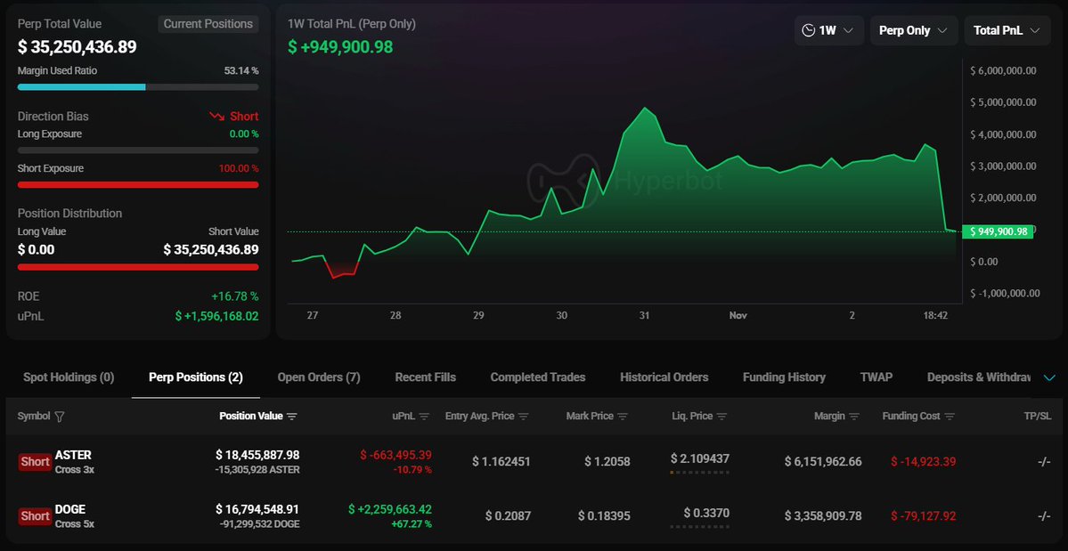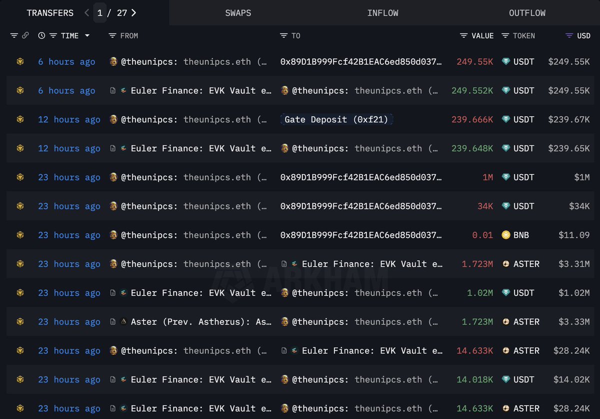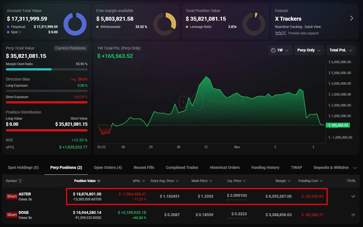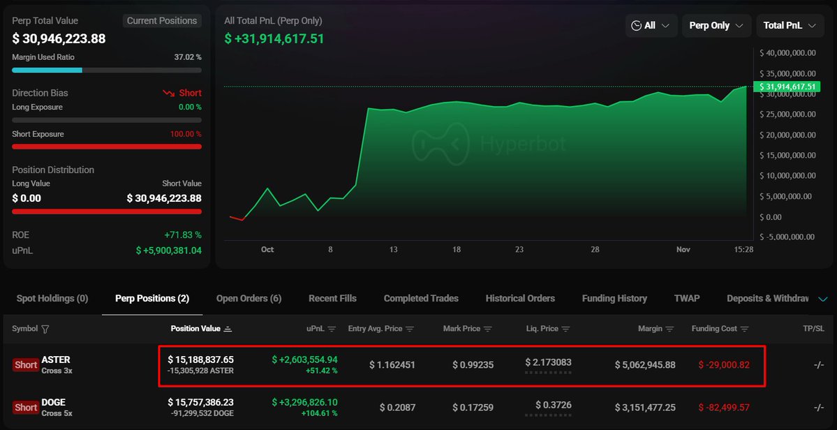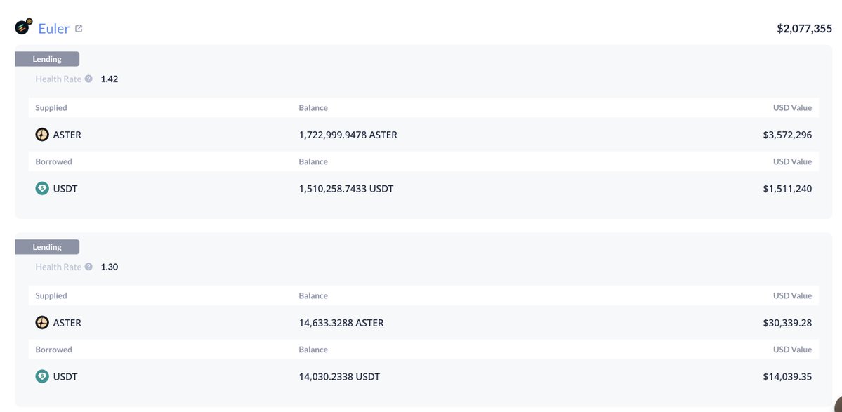 - 钱包 "0xBAD" 存入380万美元开立$ASTER空头仓位,价值1800万美元。