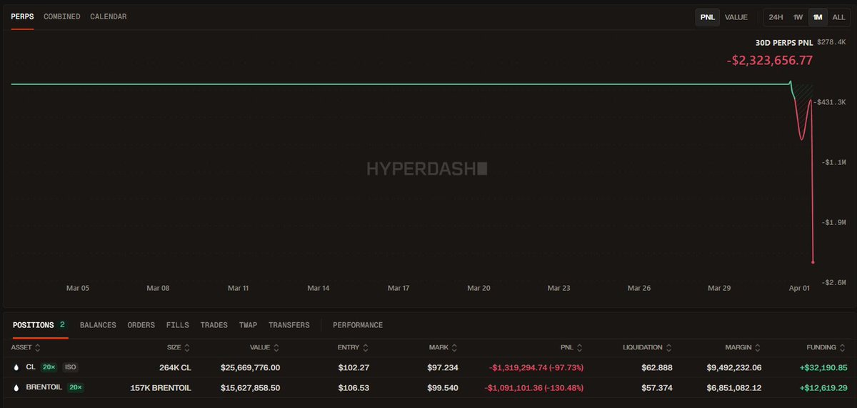另一方面,该鲸鱼以20倍杠杆开立了一个小的$BRENTOIL空头仓位。