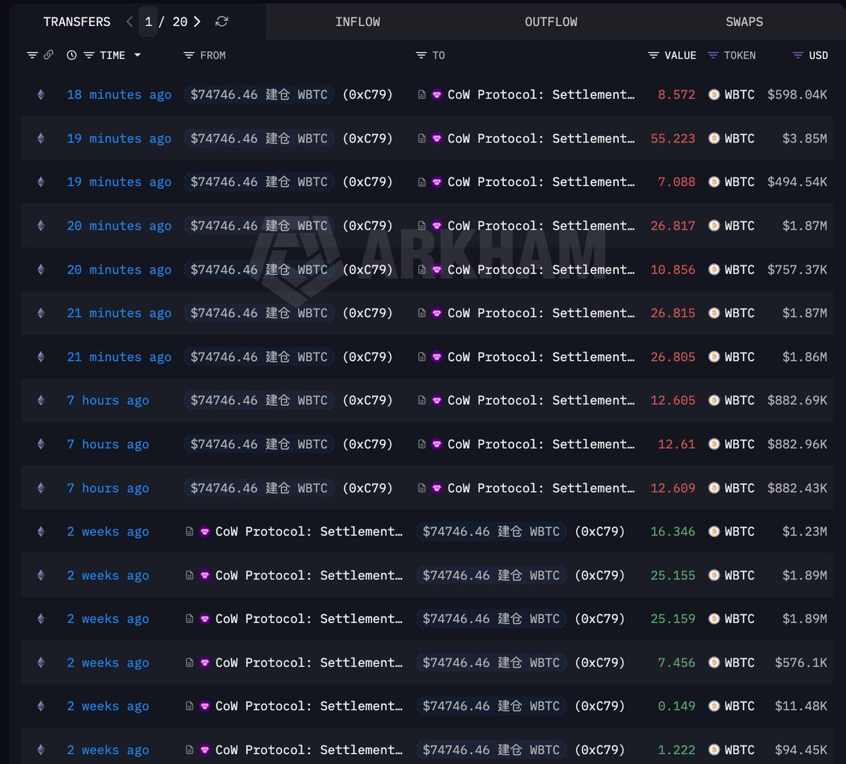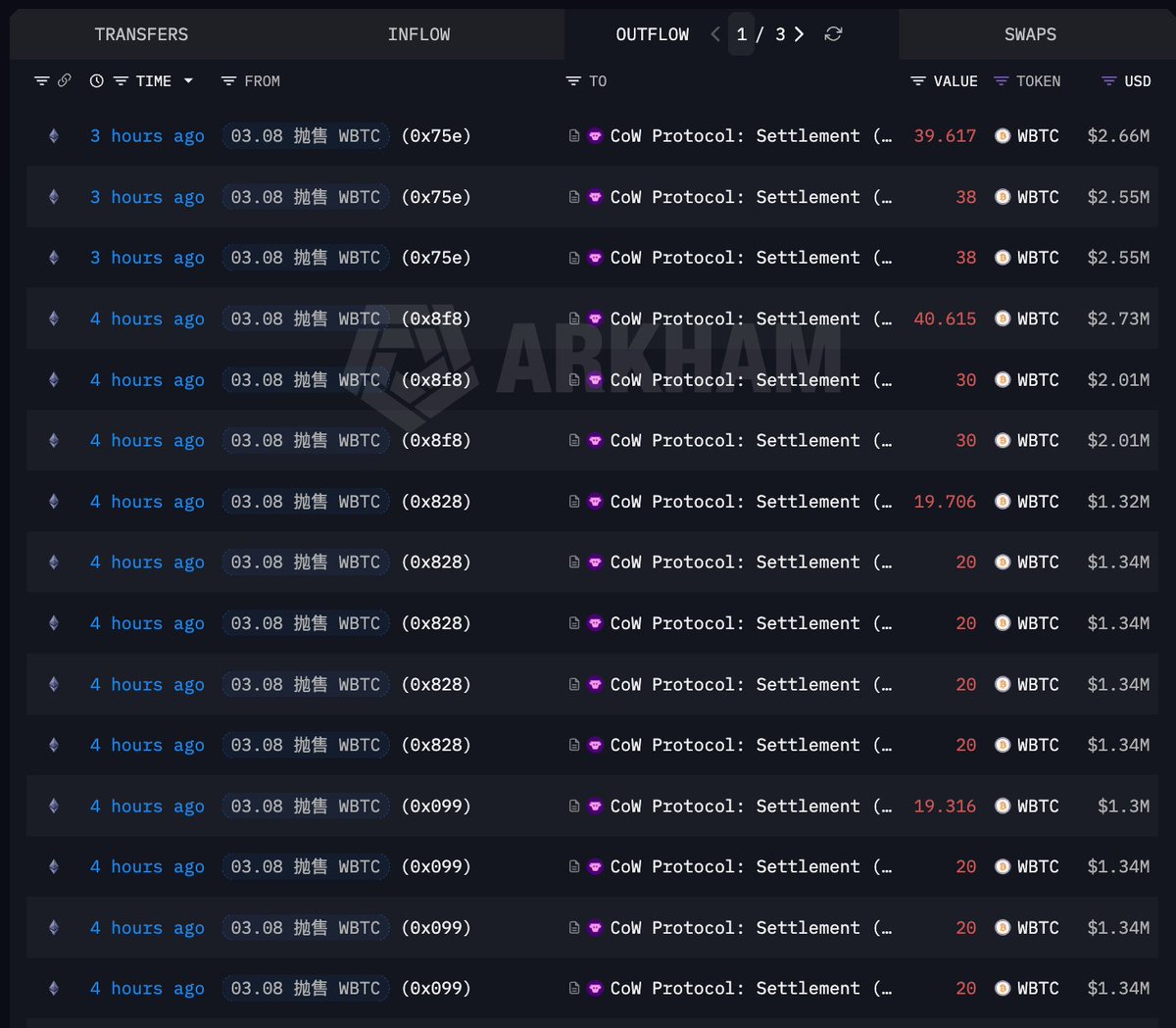 鲸鱼投资者在3天前购入的125.9 WBTC后出售...实现20万美元收益