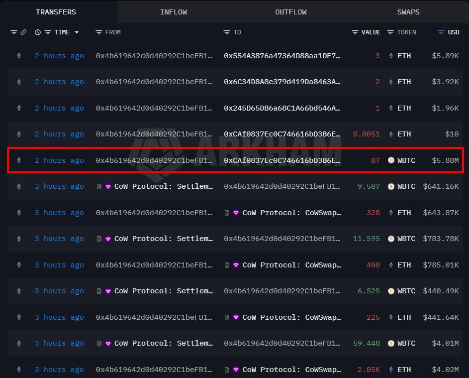 链上地址全数清仓115.6枚WBTC,亏损约448万美元
