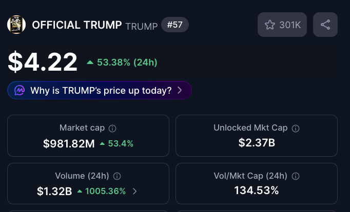 TRUMP 特朗普币 - $3.725