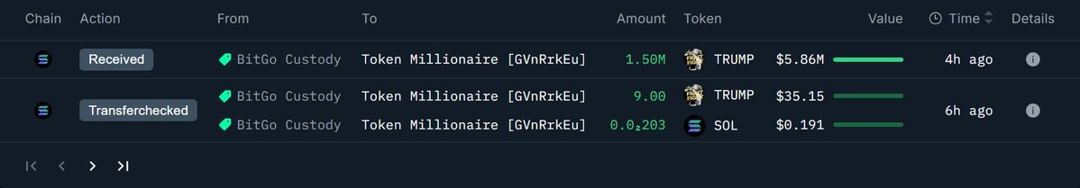 这些 TRUMP 属于 2 月初时团队分配钱包解锁转出的 3250 万枚 TRUMP ($1.43 亿) 里的一部分。